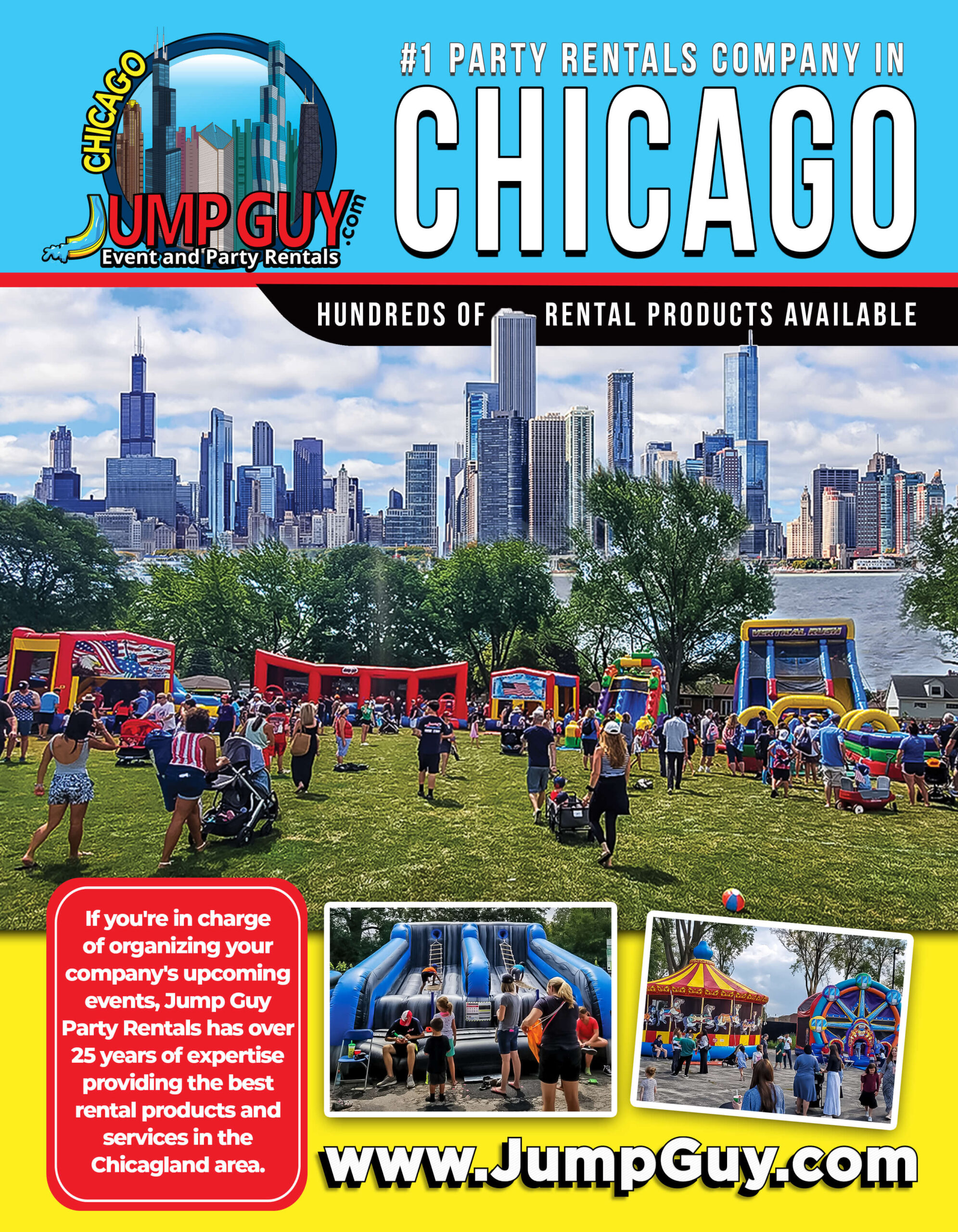 Jump Guy delivers across the full Cook County Northwest and Schaumburg-Elgin-Barrington corridor. Schaumburg party rentals are handled at schaumburgpartyrentals.com. Barrington bookings are managed at barringtonpartyrentals.com. The complete Jump Guy fleet and inventory is available at jumpguy.com.