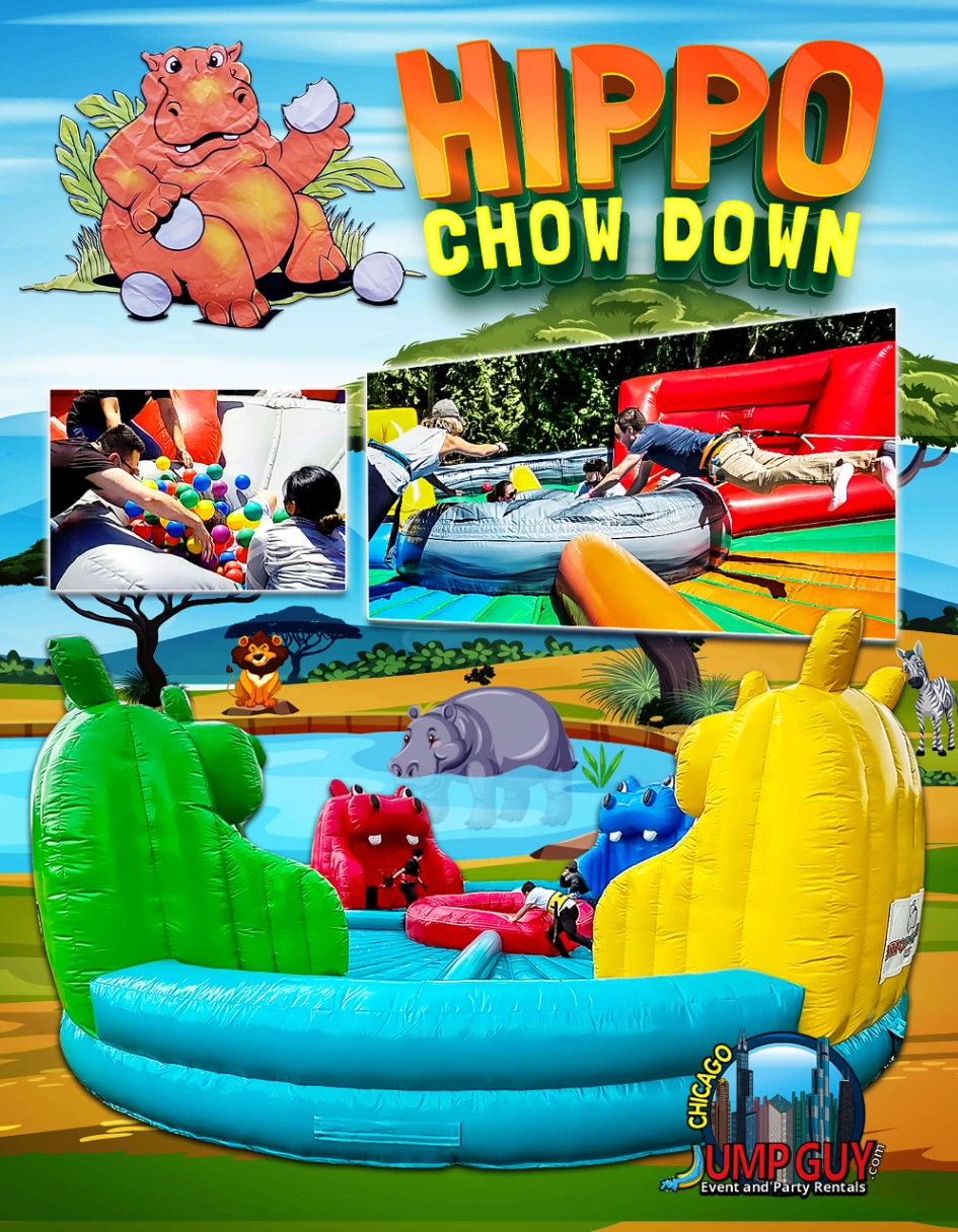 The Zombie Bounce House Combo is the standout themed unit for older kids and fall events in Hoffman Estates. Halloween gatherings near the NOW Arena corridor on Golf Road, end-of-summer events throughout the 60192 ZIP, and school-age birthday parties in the family residential neighborhoods surrounding Vogelei Park consistently book this unit for its crowd recognition factor. Available via jumpguy.com.